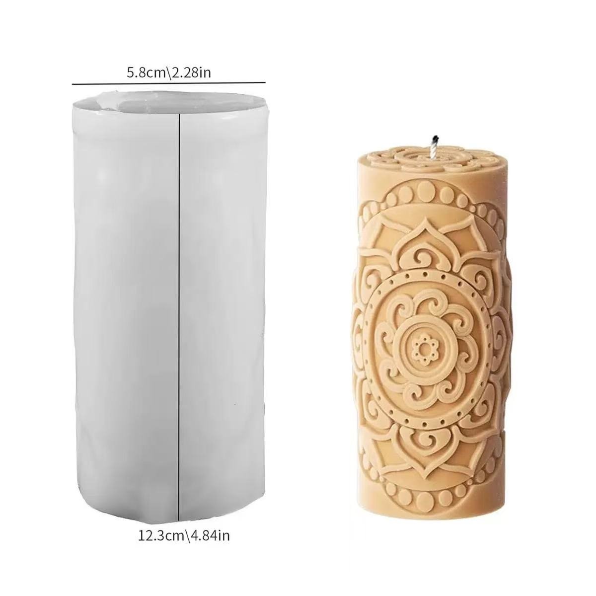Mold shape: Slim tall cylindrical pillar with rose-mandala emboss