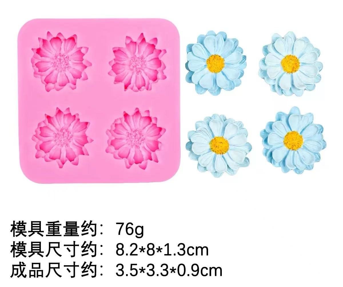 Contains 4 symmetrical bloom-shaped cavities, each engineered to form 3D chrysanthemum-style or daisy-style flower pillar candles.