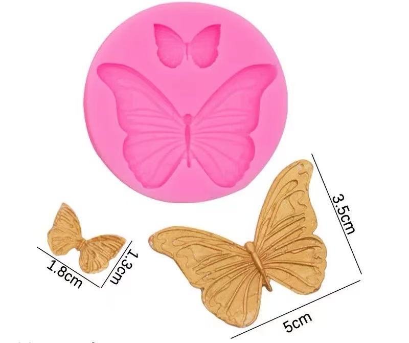 It includes two artistic cavities (1 large, 1 mini), both sculpted with detailed butterfly anatomy — wing veins, curved body shape, antenna, and symmetrical wing design for stunning edible results.