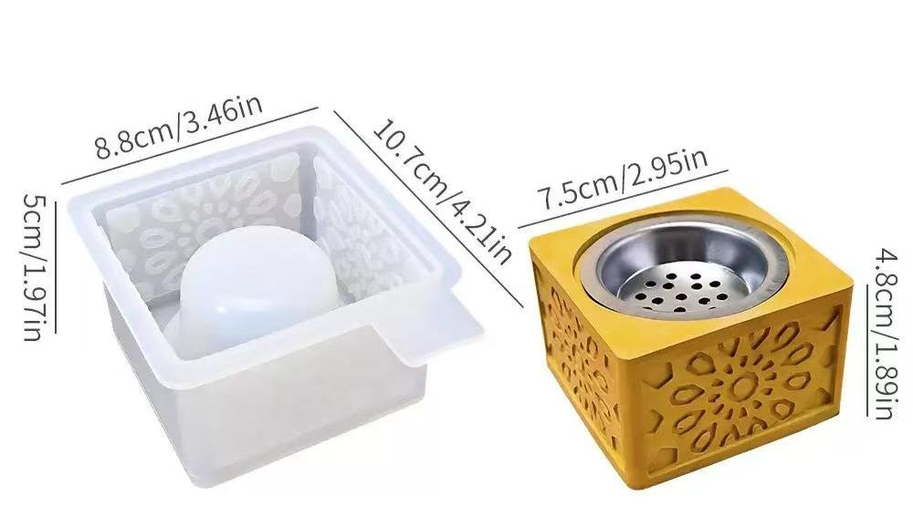 A square silicone cube mold designed for casting both epoxy resin and gypsum/plaster (gypsum decor, soap dishes, trays, candle holders, and mini storage blocks).