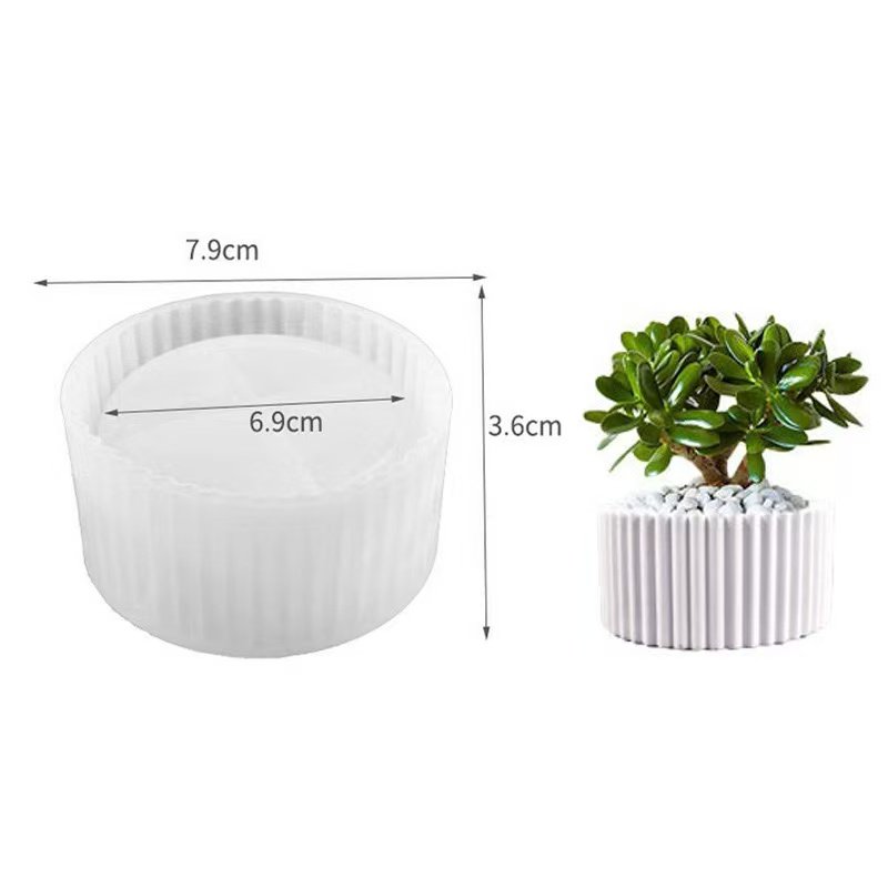 A cylindrical, flexible silicone casting mold designed for gypsum, epoxy resin, resin-gypsum composite, candles, and decorative containers. It features a continuous vertical fluted/ribbed inner wall pattern that creates a clean, modern, textured finish on cast pieces.