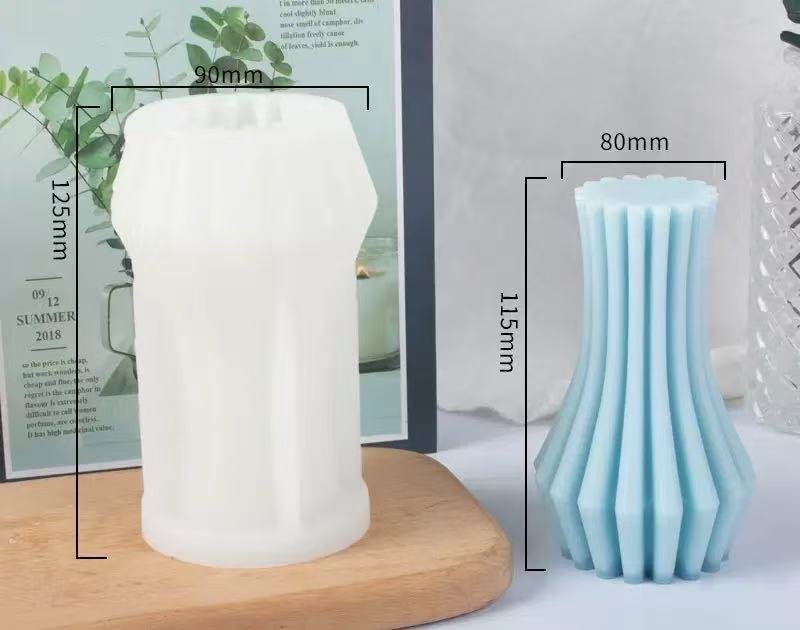 A fluted cylindrical silicone mold that produces a 6-sided hex-pillar candle.