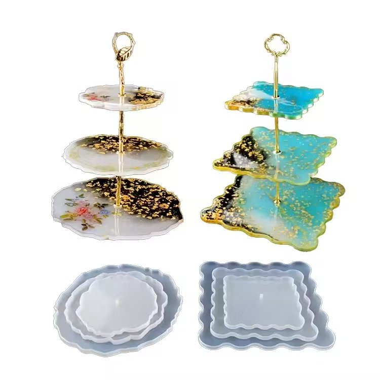 3-Tier Petal/Geode-style Tray Molds (large, medium, small tier cavities)