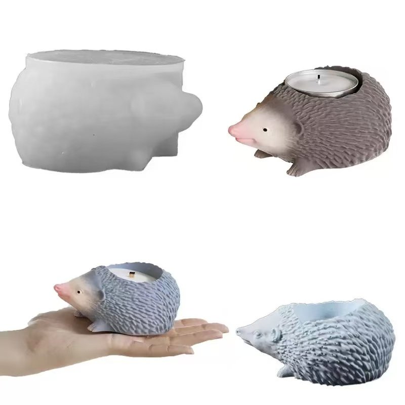 A 3D hedgehog-shaped candle mold crafted from soft, high-flex, heat-resistant silicone, engineered to produce detailed tealight or decorative pillar candles with a textured spiky body and a smooth face finish. The mold forms a realistic hedgehog figure with clearly defined quills, nose, eyes, and body contours.