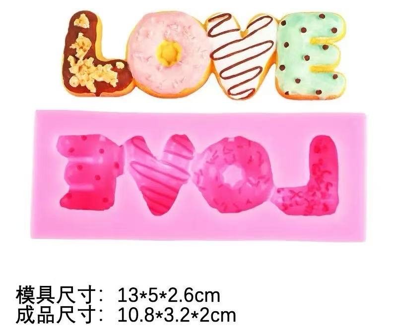 Flexible silicone mold for LOVE-themed chocolates, fondant, and gummy candy.