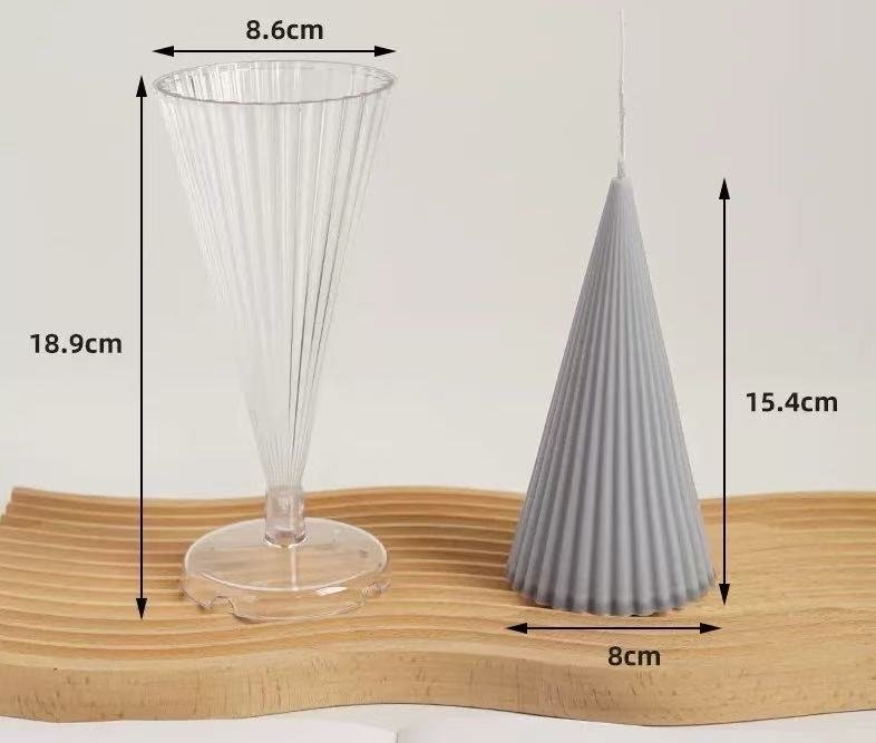 Ribbed Cone Pillar Candle Mold (15.4cm Tall, 8cm Base Width)
