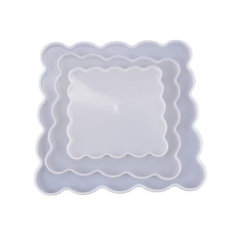 ScallopSquare is a 3-piece layered silicone mold set designed for epoxy and UV resin casting, featuring a modern square silhouette with soft, wavy scalloped edges. The set includes large, medium, and small nesting molds that allow crafters to create stacked trays, layered resin art, or multi-level decorative pieces with seamless alignment.