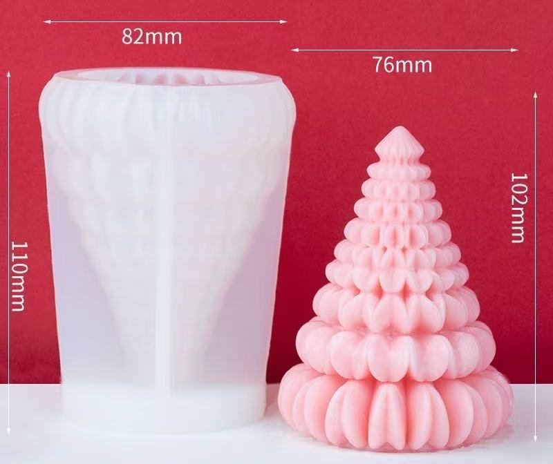 • This is a tall seasonal silicone candle mold shaped like a layered Christmas tree pillar.